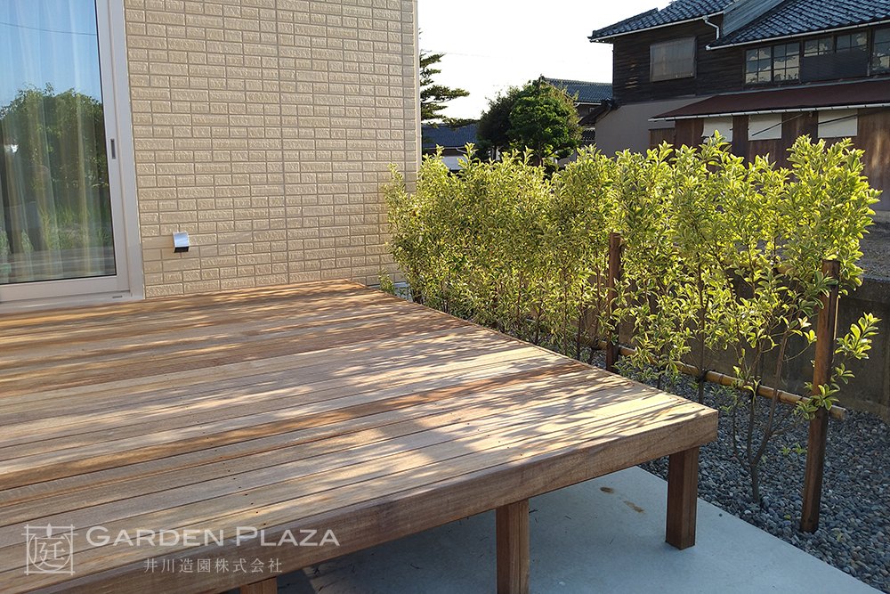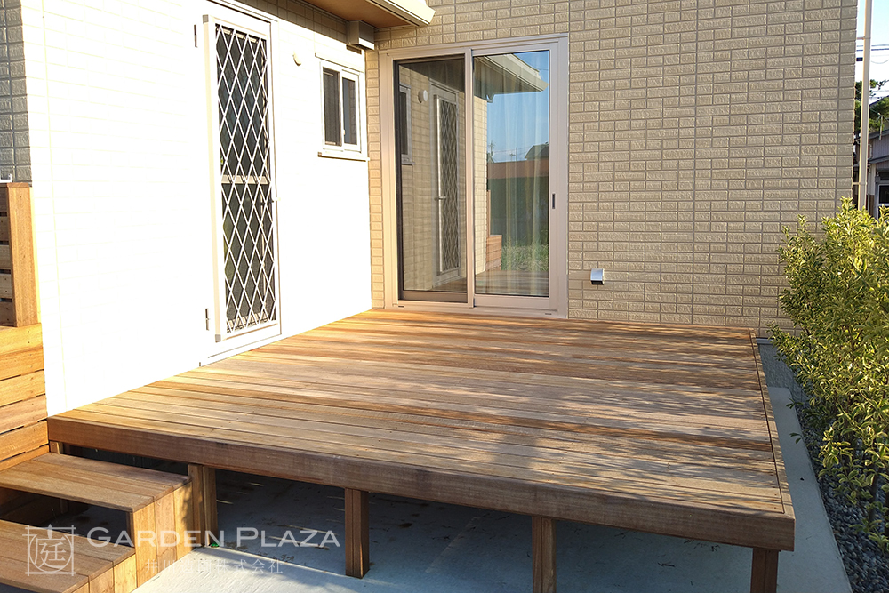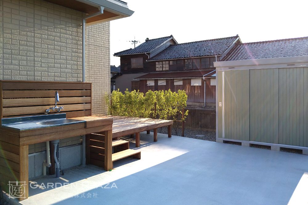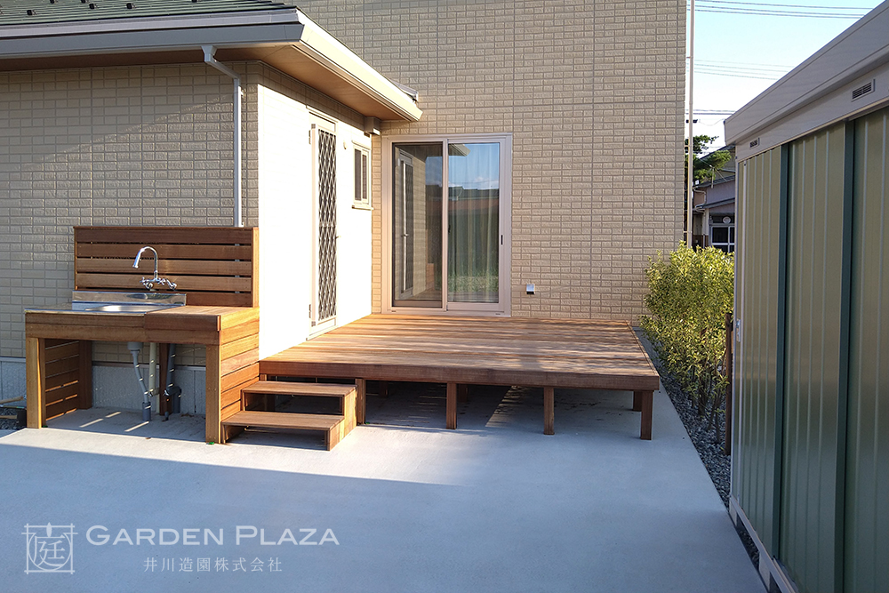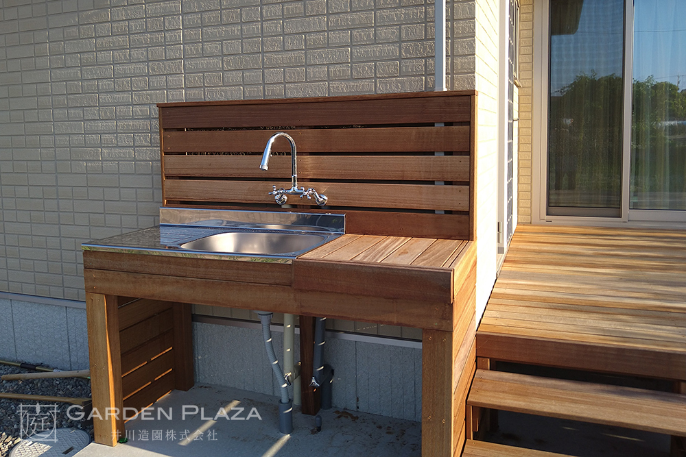 ハードウッドデッキにシンクをプラスした快適な庭空間