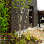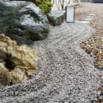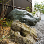 自然石や砂利、植栽を組み合わせた、