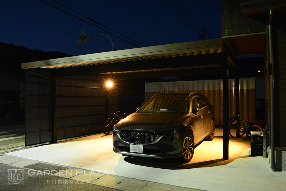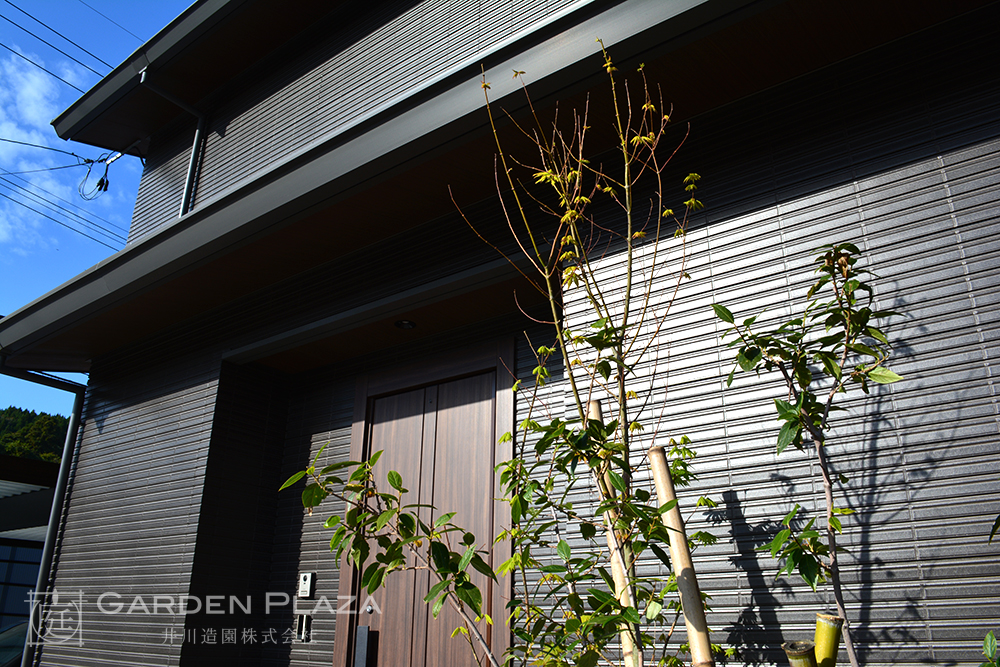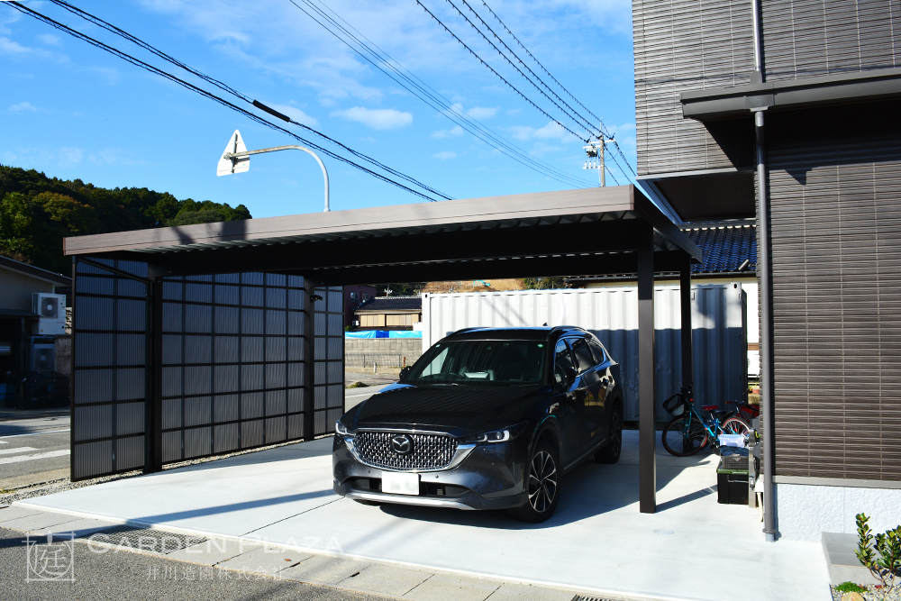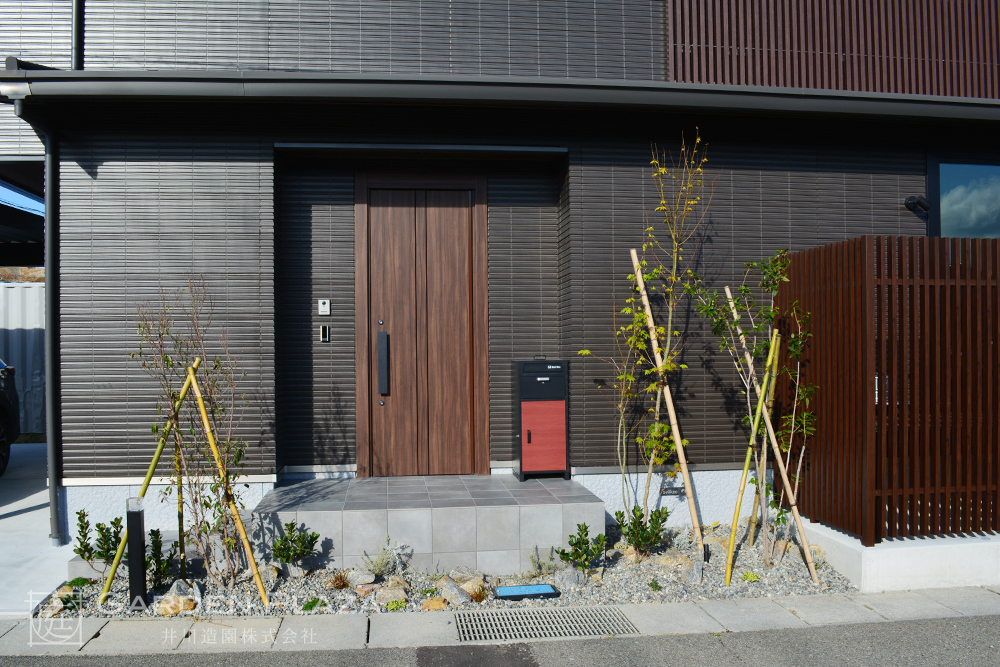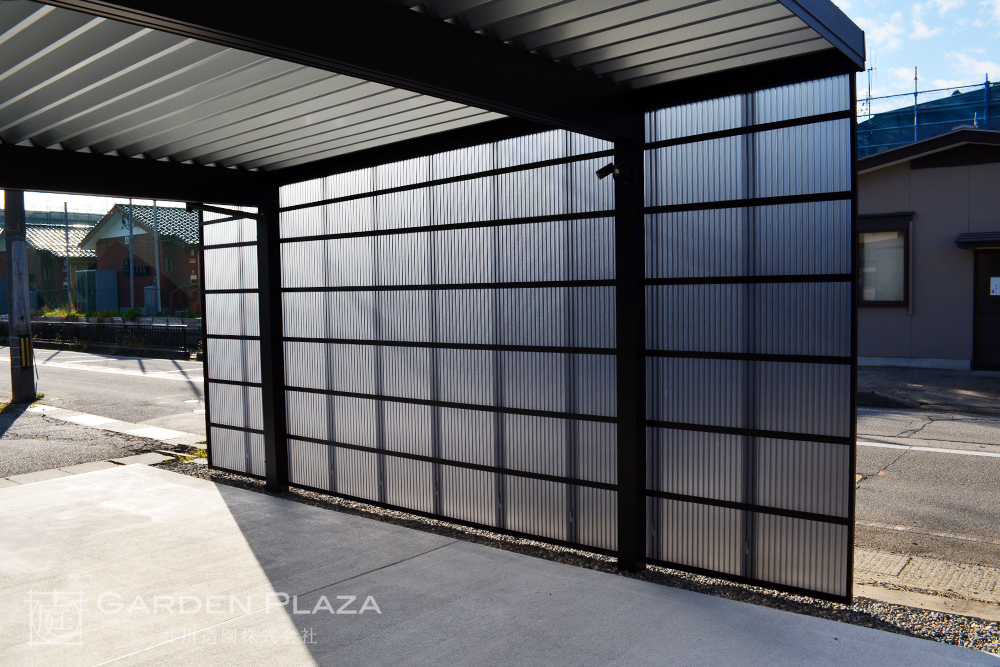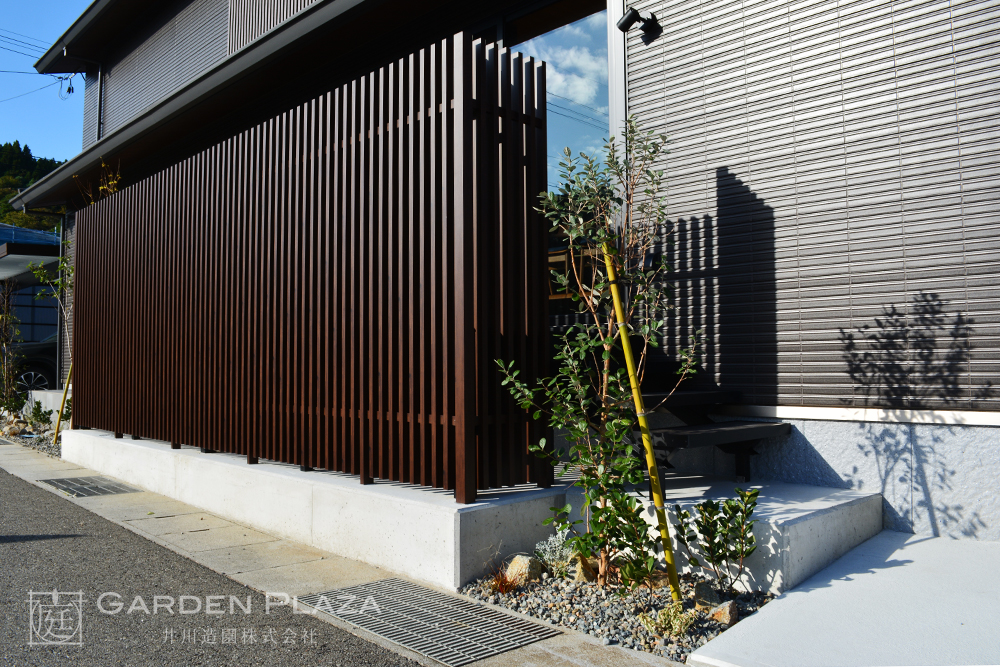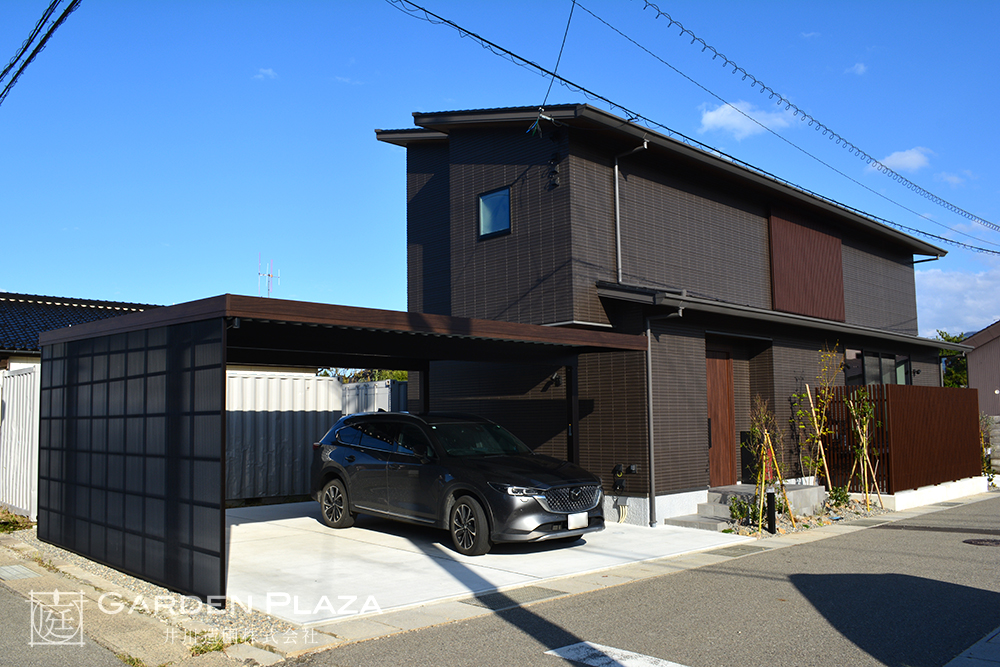 天然木の温かみを感じられるウッドフェンスは、 程よい目隠し効果を保ちながら 空間に優しい雰囲気をプラス。 植栽との相性も良く、外構全体を柔らかく。 リビングから自然につながるテラスは、 ゆったりと楽しめる半屋外空間。 ライフスタイルに合わせた 心地よいひとときを演出。