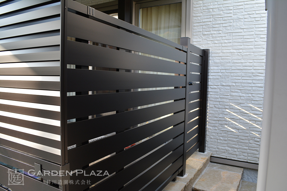 フェンス周りに植栽を配置することで、